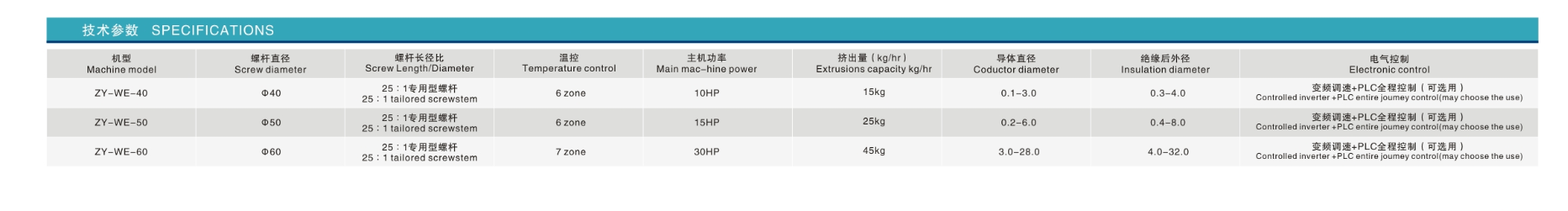 5、適用擠出材質(zhì):FEP(聚全氟乙丙烯F46)、PFA(氧化烷氧基乙烯樹脂)及ETFE(F40)