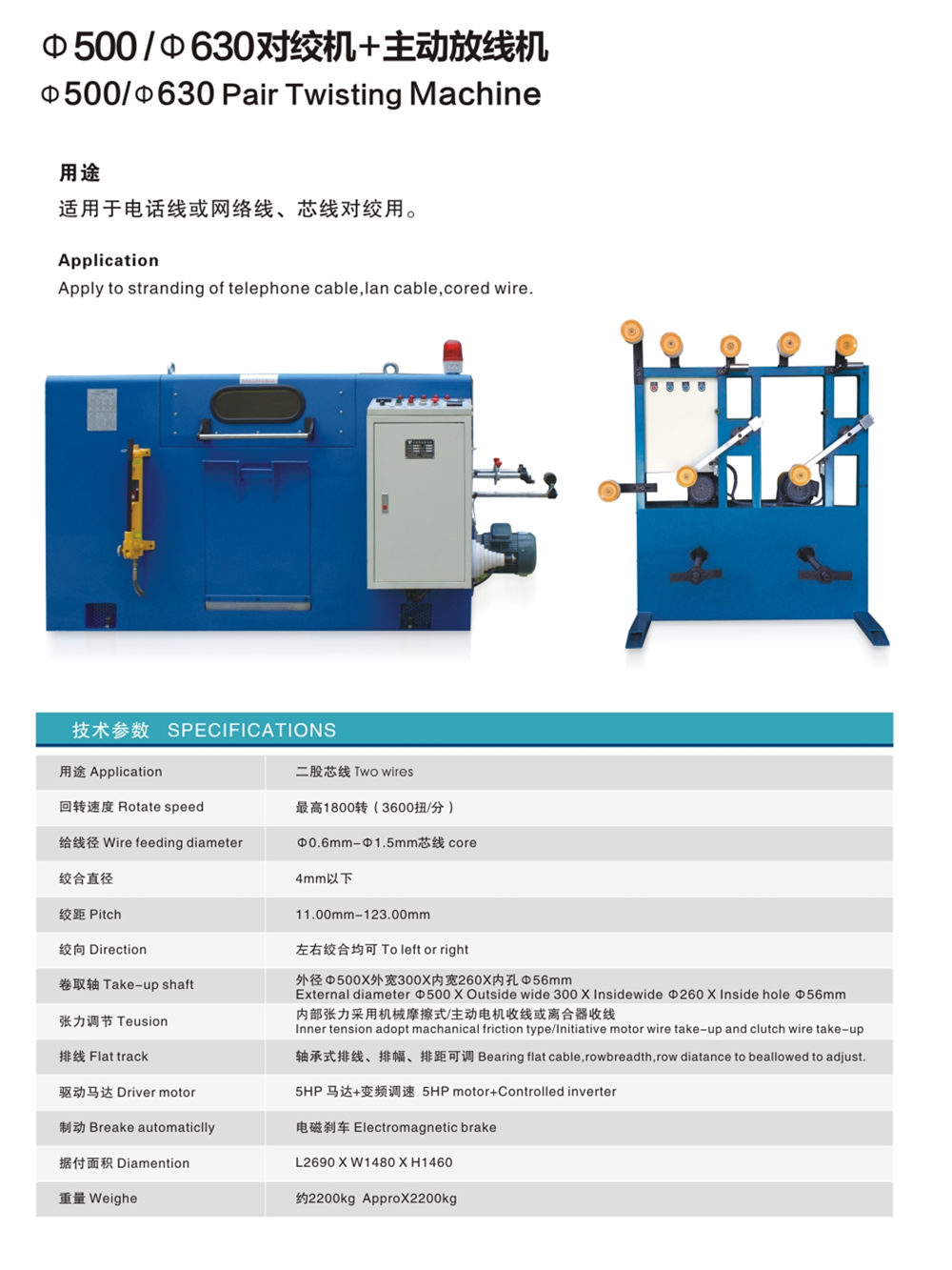 Φ500/Φ630對絞機(jī)+主動放線機(jī)