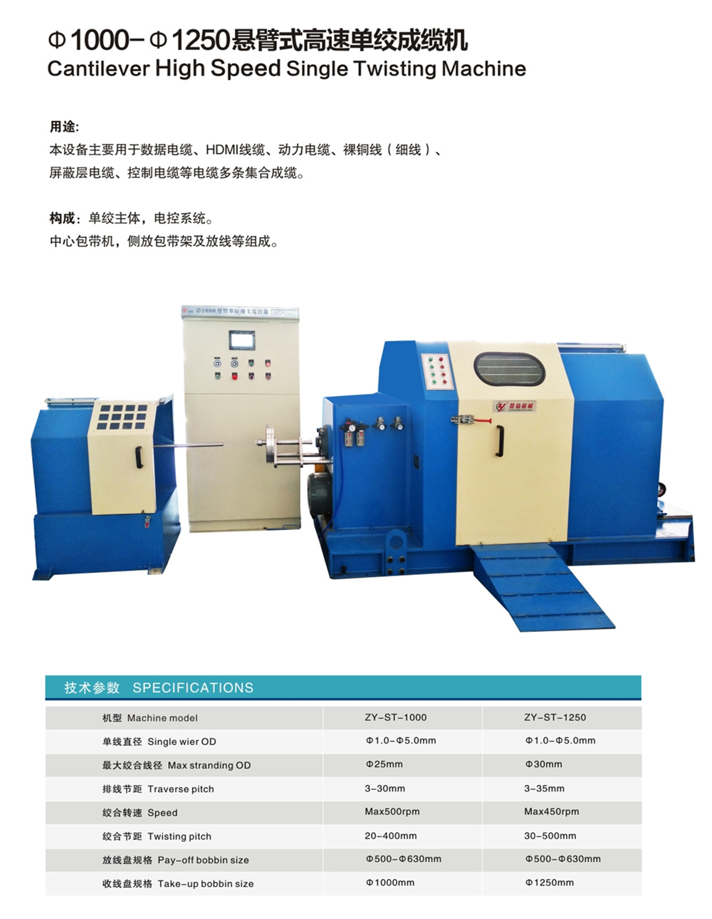 Φ1000-Φ1250懸臂式高速單絞成纜機